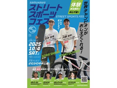 「SAMUKAWAストリートスポーツフェス」10月4日開催 神奈川県寒川町では、令和7年10月4日(土)に「SAMUKAWAストリートスポーツフェス」を開催します。 会場は「さむかわ中央公園」...