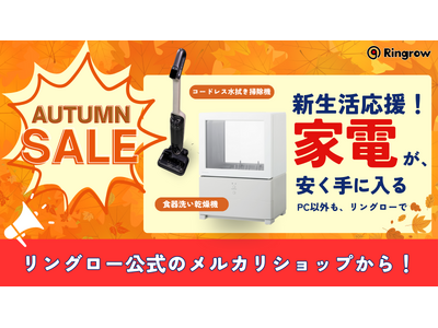 秋の新生活を応援!リユースPCのリングロー、PCも家電も揃う「オータムセール」メルカリShopsで開催