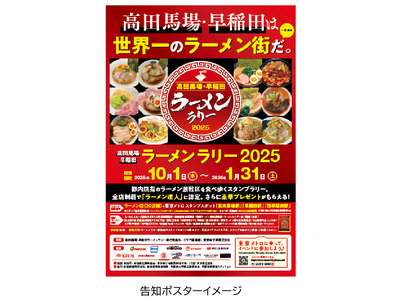 2025年10月1日(水)から2026年1月31日(土)まで実施 東京地下鉄株式会社(本社:東京都台東区、代表取締役社長:小坂 彰洋、以下「東京メトロ」)と(高田馬場早稲田ラーメンラリー実行委...