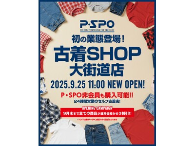 P・SPO初の古着ショップ『P・SPO 古着SHOP大街道店』、9月25日オープン - 24時間ショッピング可能、会員は全品30%OFF、P・SPOの会員でなくてもどなたでも購入可能! -