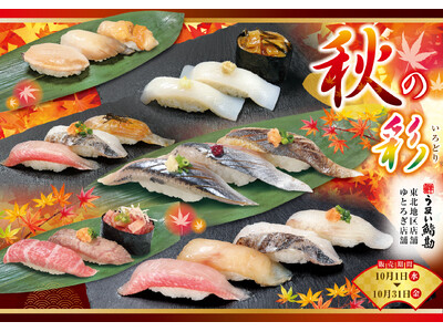 秋に旬を迎える、とびきり旨いネタ続々入荷! 株式会社アミノ(本社:宮城県仙台市、代表取締役執行役員社長:上野 敏史)が運営する寿司業態 「うまい鮨勘」では、東北地区ゆとろぎ店舗において「秋の彩...