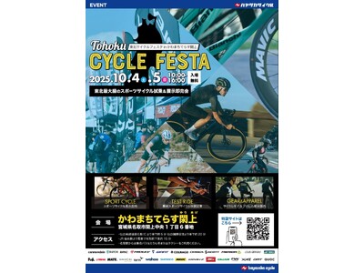 東北最大級のスポーツサイクルフェスティバル「東北サイクルフェスタ 2025」が、10月4日(土)・5日(日)宮城県名取市 特設イベント会場「かわまちてらす閖上」にて開催!