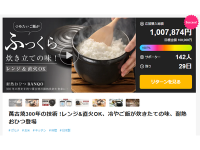 マズいご飯がおいしいご飯に!クラウドファンディング支援額100万円突破!萬古焼300年の技術を使ったおひつが【Makuake】で話題沸騰!冷たいご飯がふっくら炊きたて!忙しい主婦の方の味方。