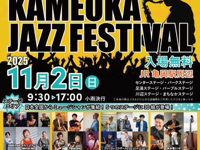 ~世界的サルサシンガーNORAも登場!JR亀岡駅前が熱狂に包まれるジャズフェスと、プロアマ9団体が奏でる初の吹奏楽の祭典~ 京都府亀岡市(市長:桂川孝裕)は、市制70周年を記念し、2025年1...