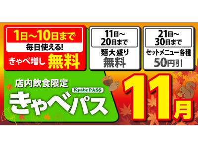 株式会社物語コーポレーション(本社:愛知県豊橋市/代表取締役社長:加藤 央之)が運営する『熟成醤油ラーメン きゃべとん』(以下、きゃべとん)は、2025年11月1日(土)から毎日使えるお得なク...