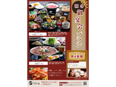 最大70名様まで貸切可。喧騒を離れ、海を眺める別館で過ごす大人の忘新年会 株式会社丹友商事グループの「天橋立荘 別館 よさの荘」(所在地:京都府宮津市字杉末15162)は、冬の味覚と絶景を堪能...