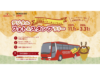 北海道中央バス(本社 北海道小樽市 代表取締役社長 二階堂恭仁)では2025年11月1日(土)から2026年3月31日(火)まで、デジタルスタンプラリーイベント「定期観光バス×キュンちゃん デ...