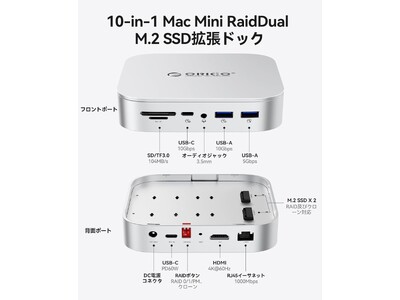 Mac Mini 4のSSDストレージソリューションとして最適! ORICO(オリコ)は、革新的な外付けSSDケース 10in1 MiniRaid NVMe/SATA SSD 外付けケース「M...