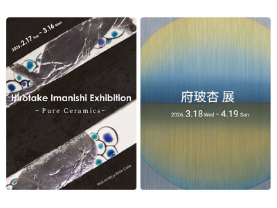 【La RINAカフェ 月替わり個展】焼成の痕跡が残る壁面陶芸『今西 泰赳 展 -Pure Ceramics-』(開催中)/線と色を重ねる染色画『府玻杏 展』(2026年3月18日~)