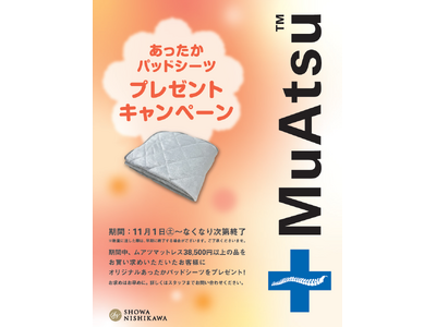 寒い冬の頼れる味方!【昭和西川】11月1日(土)よりムアツ マットレスご購入のお客様にオリジナルあったかパッドシーツプレゼント