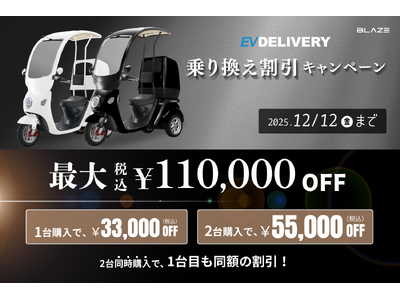 【さよなら50cc】(株)ブレイズの屋根付き3輪電動スクーター EVデリバリー対象「乗り換え割引キャンペーン」を実施