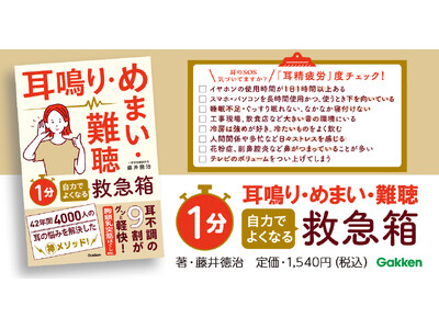 薬や通院で改善しない耳鳴りや耳のつまり、それ由来の聞こえづらさ、めまいの改善が期待できる"自分でできる1分耳不調改善法"をわかりやすく紹介。 株式会社 学研ホールディングス(東京品川/代表取締...