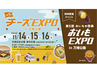 約40店が軒を連ねる関西最大級&唯一の「チーズ」がテーマのフードイベント『第7回チーズEXPO 』万博記念公園にて11/14(金)~16(日)開催。秋の味覚『おいもEXPO 』も同時開催!