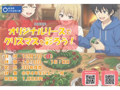 【新潟県胎内市】自然の素材でクリスマスを彩ろう!「オリジナルリースでクリスマスを彩ろう!」新潟県少年自然の家でクラフト体験イベントを開催!