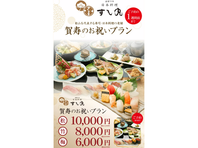 還暦喜寿米寿など、大切なご家族の長寿を祝う特別なひとときをプロデュース 愛媛県松山市の老舗寿司店「すし丸」(本店:愛媛県松山市二番町)は、還暦や古希、米寿といった人生の節目を祝う「賀寿のお祝い...
