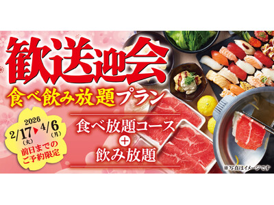 物語コーポレーション(本社:愛知県豊橋市/代表取締役社長:加藤 央之)が全国113店舗を展開する『寿司しゃぶしゃぶ ゆず庵』(以下、ゆず庵)は、2026年2月17日(火)より、「歓送迎会食べ飲...