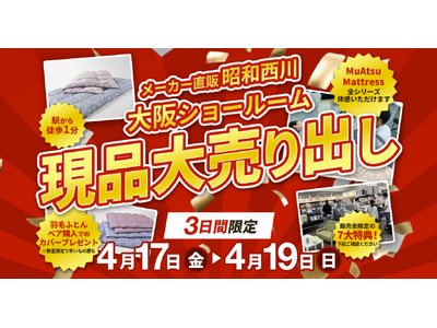 MuAtsu(ムアツ)をはじめ、多彩な寝具を展開する昭和西川株式会社(所在地:東京都中央区、代表:西川元一朗)は、今の時期だからこそお得に選べる羽毛ふとんを中心に、寝具を特別価格で提供する大阪...