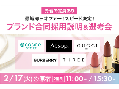 原宿開催『ブランド合同 美容部員採用説明会・選考イベント』2月17日(火)11:00~/15:30~