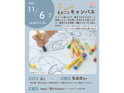 のびのびアート体験をしよう! 特定非営利活動法人ほっぺ(代表:大森奈津子兵庫県三木市)は、2025年11月6日(木)、乳幼児親子のプレイスペースhoppe「親子のibasho」(コーベヤスポー...