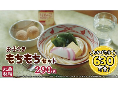 打ち立てうどんと「丸亀うどーなつ」、ジュースがセットで290円 『丸亀お子さまもちもちセット』 販売開始から1年で累計販売数630万食突破!