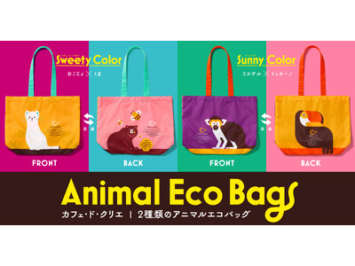 『カフェ・ド・クリエ』初のオリジナルエコバッグ!"おこじょ"などの目を引くアニマルモチーフ×鮮やかカラーが印象的な「アニマルエコバッグ」を2月10日(火)より新発売