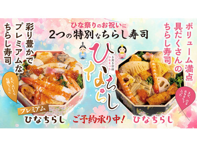 株式会社活美登利(本社:東京都品川区、代表取締役社長:土屋秀仁)が運営する「回し寿司活/寿司活」は、3月3日限定販売のひなちらしのご予約受付を開始いたしました。 3月3日は ひなまつり!「ひな...