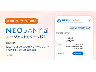 <邦銀初>住信SBIネット銀行、AI銀行サービス「NEOBANK ai」エージェントのベータテストを開始