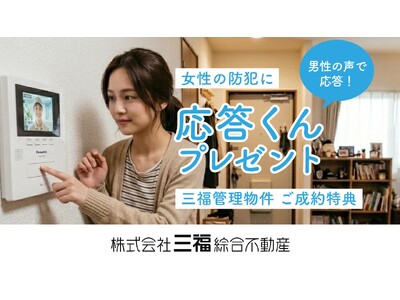 賃貸マンションの玄関先不審者の訪問を想定した防犯サポート 三福綜合不動産(愛媛県松山市)は2026年2月より、管理物件をご成約いただいた女性のお客様を対象に、防犯サポート機器「応答くん」を数量...
