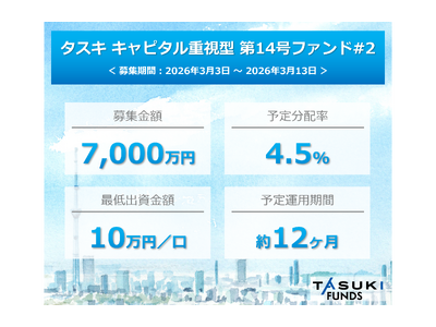 不動産投資型クラウドファンディング「TASUKI FUNDS」タスキ キャピタル重視型 第14号ファンド#2の投資募集のお知らせ