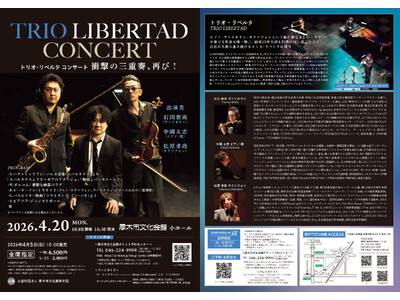 『トリオリベルタ コンサート』が2026年4月20日(月)に厚木市文化会館 小ホール(神奈川県厚木市恩名1丁目920)にて開催されます。 チケットはカンフェティ(運営:ロングランプランニング株...