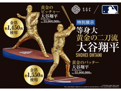 大谷翔平選手の等身大黄金像 二刀流が揃って関西で初展示 二体あわせた参考価格は1億1,000万円!