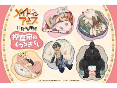 アニメ「メイドインアビス」シリーズより、クッションでくつろぐ姿が可愛い新規描き下ろしイラストを使用した「探窟家のくつろぎくじ」がくじ引き堂に登場!