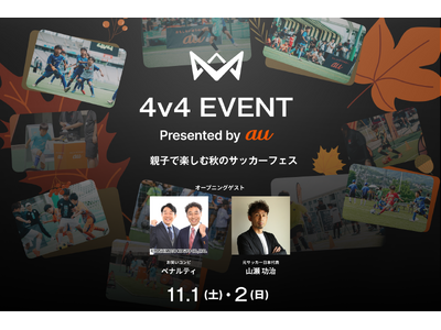 本田圭佑考案の4人制サッカー「4v4」を親子で体験!「4v4 EVENT Presented by au 親子で楽しむ秋のサッカーフェス」