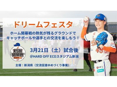オイシックス新潟アルビレックスベースボールクラブ(以下、オイシックス)は、3月21日(土)のホーム開幕戦で新潟県主催の大人気イベント「ドリームフェスタ」を開催することをお知らせいたします。 オ...