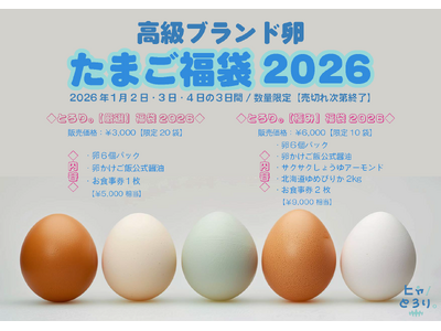 岐阜の老舗【赤鰐】監修のかき氷とTKG定食のお店「ヒャ/とろり。」(東京都豊島区)に、2026年年始、数量限定の高級ブランド卵福袋2種、冬季限定「白い出汁巻きTKG定食」「フルーツ白くま氷」が...