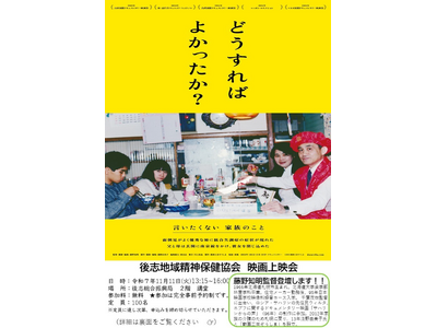 後志地域精神保健協会ではこのたび、 映画「どうすればよかったか?」の上映会を北海道後志総合振興局にて開催いたします。 当日は、本作を手がけた藤野知明監督が登壇し、上映後にはニセコ羊蹄広域倶知安...