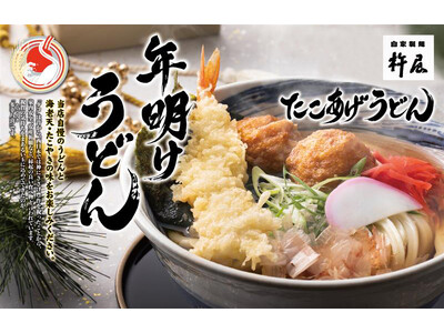 株式会社グルメ杵屋グループの株式会社グルメ杵屋レストラン(大阪市住之江区北加賀屋三丁目4番7号、代表取締役:椋本 充士)が運営する「自家製麺 杵屋」では新年を祝う「年明けうどん」を2026年1...