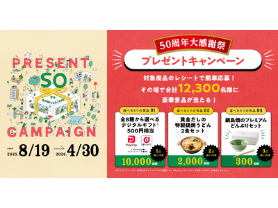 冷凍鍋焼うどんやラーメンを手掛けるキンレイが総勢12,300名様に豪華プレゼントが当たる創業50周年キャンペーン『50周年大感謝祭』を開催