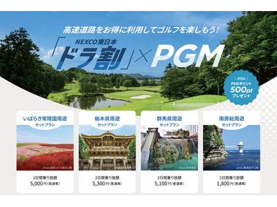 「NEXCO東日本 ドラ割×PGM」がコラボした北関東3県エリア及び南房総エリアの「周遊セットプラン」を発売!