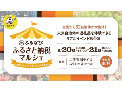 【ふるさと納税ポイント付与廃止前、ラストのリアルイベント!】32自治体が二子玉川に大集結!リアルイベント「ふるなび ふるさと納税マルシェ」9月20日(土)・21日(日)開催