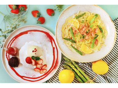 「春いちごのもちふわパンケーキ」と「アスパラとスモークサーモンのレモンクリームパスタ」 ふわふわな幸せ、心まで満たされるひとときを。 春の訪れとともにお届けします。 ◇春いちごのもちふわパンケ...
