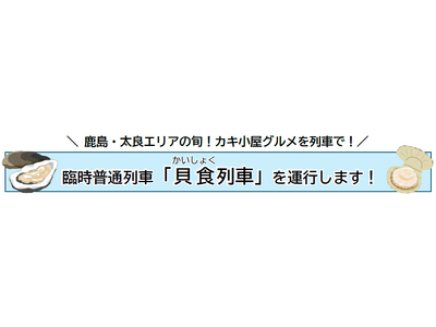 現在、旬のシーズンを迎えている「カキ」ですが、人気の鹿島太良エリアの海岸沿いの「カキ小屋」を列車に乗って訪れ、カキをはじめとするグルメを味わっていただけるよう、期間限定で臨時列車を運転します。...