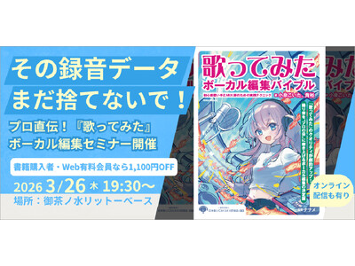 3/26『歌ってみた』録音・編集に関するあらゆるお悩みをプロが救済! 『歌ってみたボーカル編集バイブル』著者・小泉こいた。貴裕氏による実践セミナーを御茶ノ水RITTOR BASEで開催