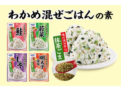 わかめ混ぜごはんがリニューアル!味の決め手は秘伝の味付け"抹茶ごま" 鮭フレーバーがおいしくなって再登場。全4種類リニューアル!