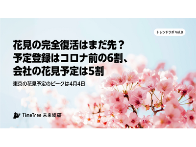 会社関連の花見予定はコロナ前と比べ5割と鈍い回復に 株式会社TimeTree(本社:東京都新宿区、代表取締役社長:深川 泰斗)の社内研究所『TimeTree未来総合研究所』(は、春の風物詩であ...