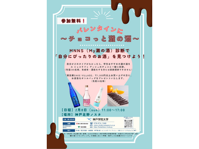 ~神戸学院大学 経済学部が考案した「MNNS(My灘の酒)診断」で「自分にぴったりのお酒」を見つけよう!~ バレンタインにチョコッと灘の酒 神戸学院大学 経済学部 木暮衣里准教授ゼミでは、日本...