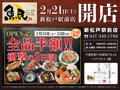 2026年2月21日(土)千葉県松戸市の新松戸駅前に「魚民 新松戸駅前店」をリニューアルオープン!2日間限定で"全品半額のリニューアルオープン記念セール"を実施!