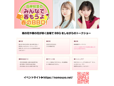 「高柳知葉のみんなで呑もうよ 第4回 春のバーベキュー!」開催決定
