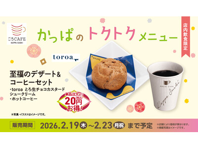 かっぱ寿司【かっぱのトクトクメニュー】至福のデザート&コーヒーセットにtoroaの『とろ生チョコカスタードシュークリーム』が登場