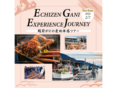 【催行日】2026年2月7日(土) 【参加料金】お一人15,000円(税込) 福井県越前町(一般社団法人 越前町観光連盟/DMO ECHIZEN)では、冬の味覚の王者「越前がに」の魅力を、食だ...